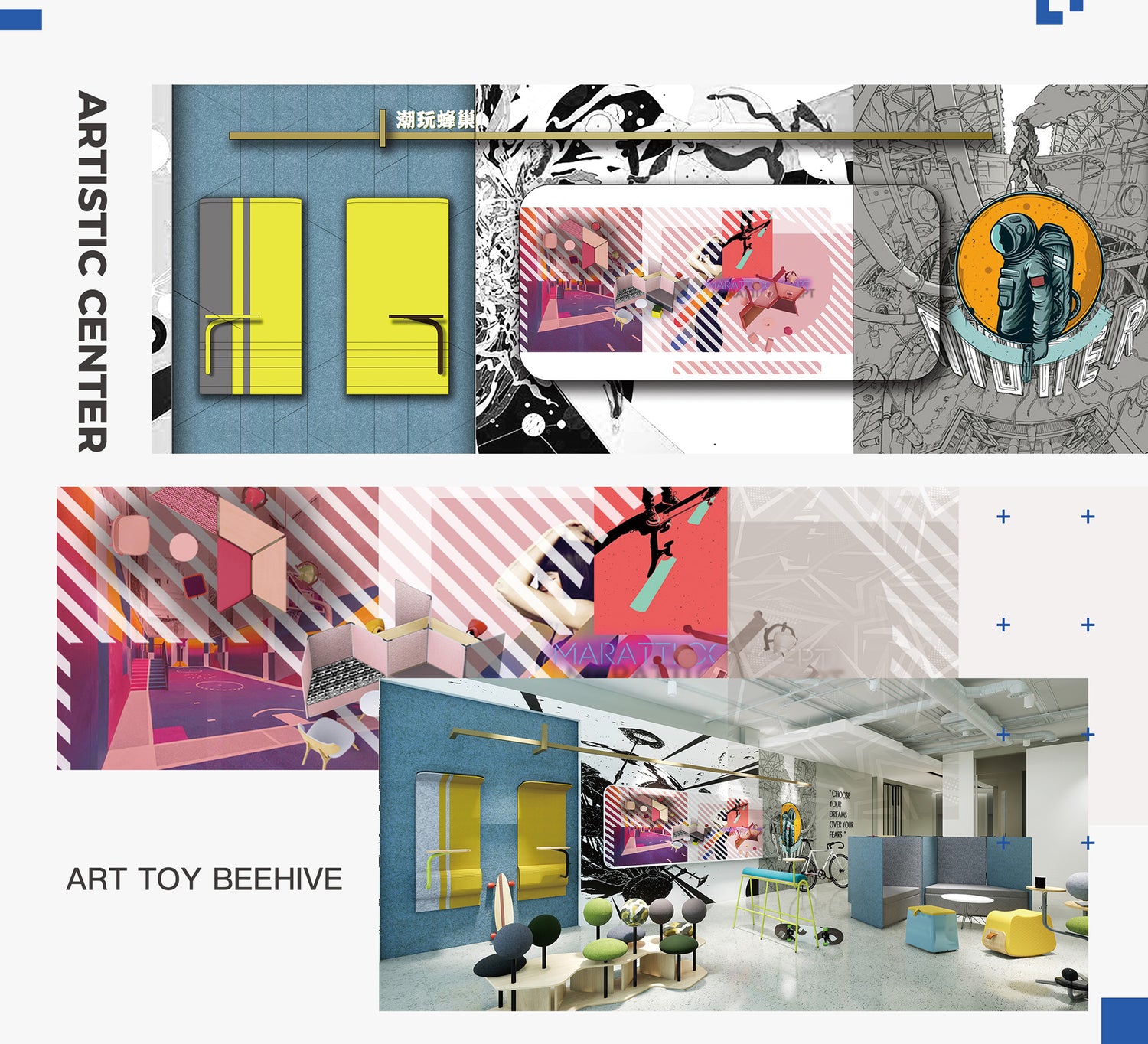 The office space form of street culture gathers high-energy players in the workplace, unleashing quirky and cool personalities, and unlocking the trendy ways for young people to socialize and work.
