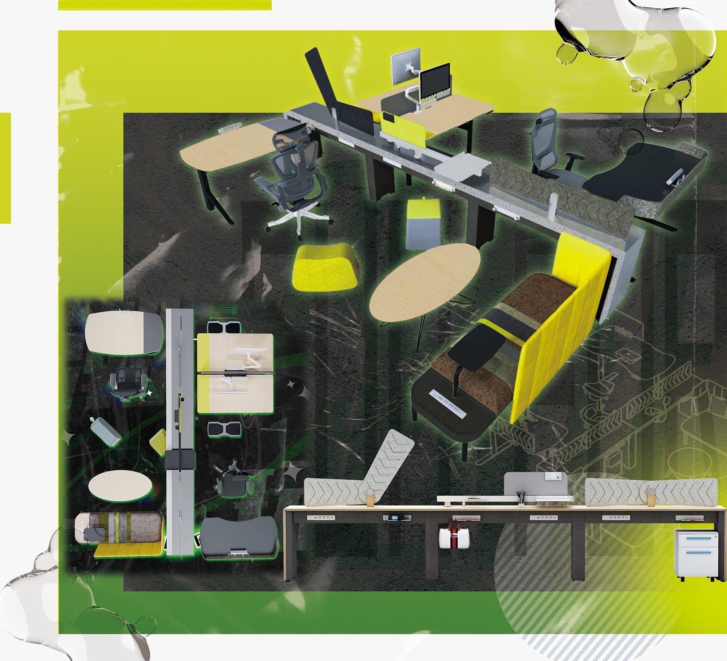 The super workstation of the business creative team guides the fermentation of thinking between movement and lifting, and seamlessly switches between office and collaboration between turning around. Innovate and operate efficiently, achieving the integration of work and fun.