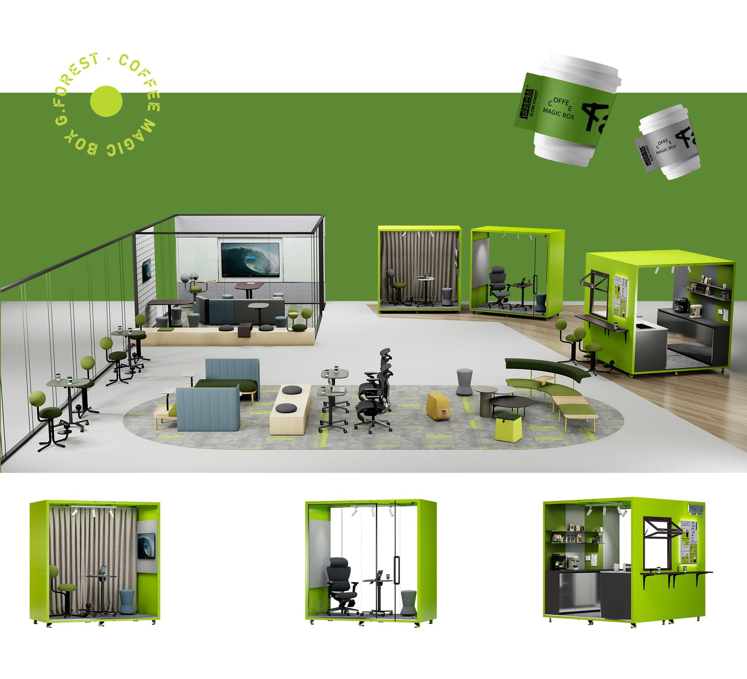 Deeply insight into the huge changes in future organizational forms.intecrate multiple popular lifestyles, create diversified office lP scenarios with thecharacteristics of the times, and innovate the interpretation of trendy office. Placreativity with the Globe Forest and enter the future innovation energy field