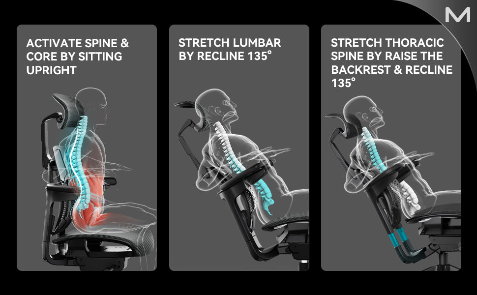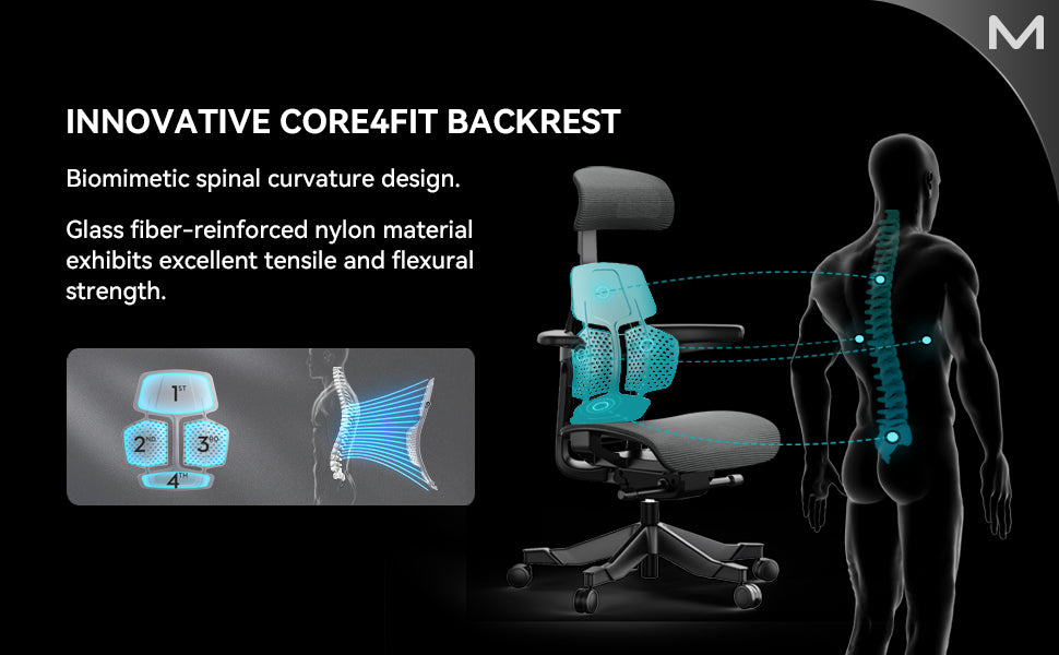Introducing the VP Ergonomic Chair, featuring the innovative Core4Fit backrest developed in collaboration with spine specialists. Engineered to emulate the healthy curvature of the spine and promote proper posture and spinal health, you can also stretch the chest muscles and spine to relax. Bid farewell to incorrect body positions and alleviate various pains in the back, neck, and lower back.